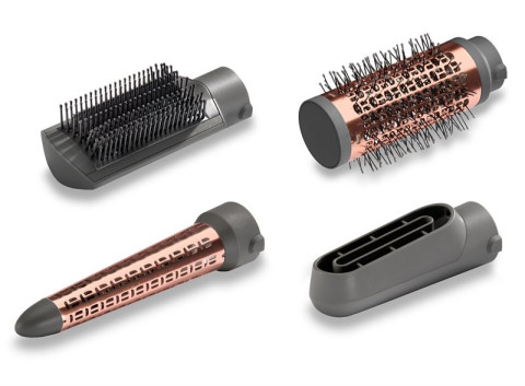 Szybka, precyzyjna i mocna suszarko-lokówka z wymiennymi końcówkami do tworzenia różnych stylizacji za pomocą jednego urządzenia. Przy użyciu dyszy suszącej przygotujesz włosy do stylizacji. Szczotka termiczna doda Twoim włosom objętości i kształtu. Stożkowa końcówka pomoże stworzyć miękkie loki i fale. Szczotka susząca wygładza włosy, zapewniając im lśniące wykończenie. Technologia jonowa uwalnia jony kondycjonujące, które kontrolują elektryzowanie się włosów i zwiększają połysk podczas stylizacji.