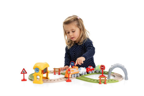 - Bogaty zestaw z torami, elektroniczną lokomotywą i 3 wagonami. Liczne akcesoria pozwalają tworzyć własne trasy i rozwijać wyobraźnię dziecka. Idealny dla małych fanów kolei.