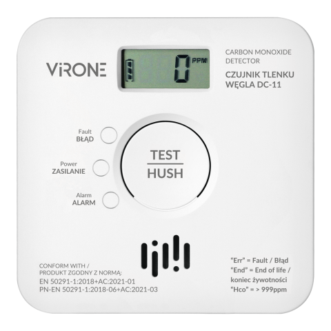 Urządzenie posiada duży wyświetlacz LCD, który sygnalizuje poziom wykrytego zagrożenia (czadu), a także niski stan baterii oraz koniec okresu eksploatacji. Ma wbudowany czujnik elektrochemiczny, który bardzo precyzyjnie wskazuje poziom tlenku węgla używając powiadomień optyczno-dźwiękowych.