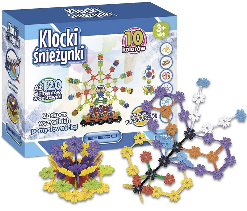 Zaskocz wszystkich pomysłowością i stwórz fantastyczne konstrukcje z naszymi klockami w kształcie śnieżynek! Aż 120 elementów w zestawie pozwala na zbudowanie naprawdę dużych i wspaniałych projektów! Z oferowanym zestawem dziecko może rozwinąć kreatywność, pobudzić wyobraźnię i ćwiczyć małą motorykę!