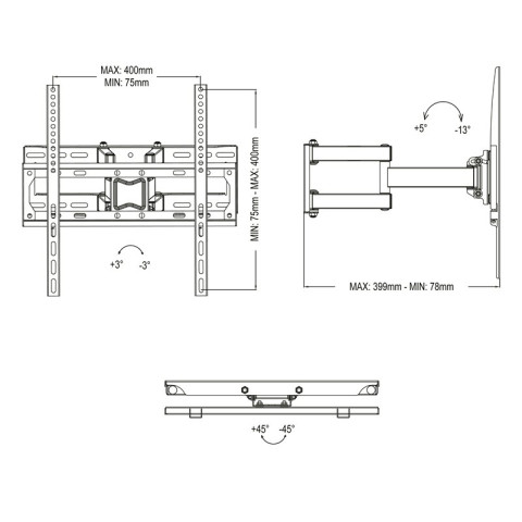 Uniwersalny uchwyt ścienny Montis MT012 „MONT BLANC” dedykowany jest do telewizorów o przekątnej od 26 do 60 cali oraz wadze nie przekraczającej 45 kg.