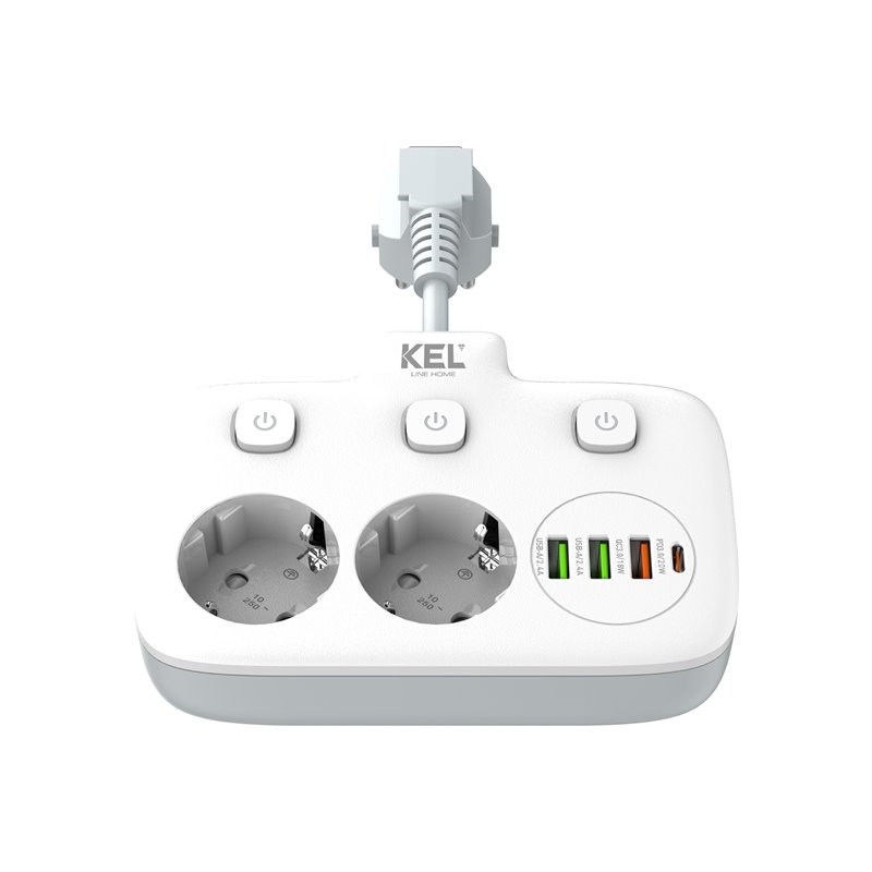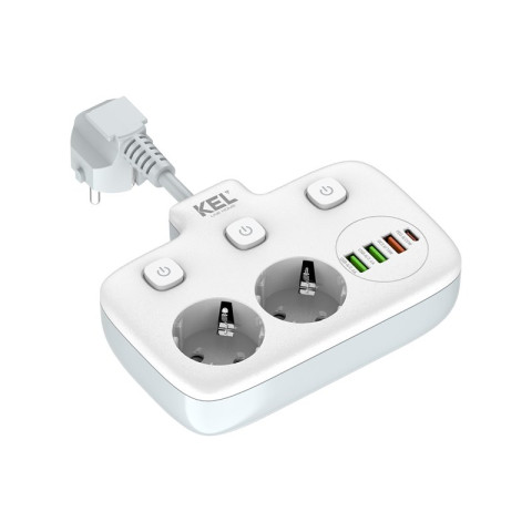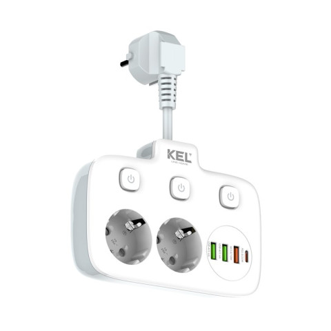 Rozgałęźnik podwójny z indywidualnym włącznikiem do każdego gniazda; 2x gniazda wtyczkowe z uziemieniem schuko, 3xgniazdo USB A, 1xgniazdo USB C