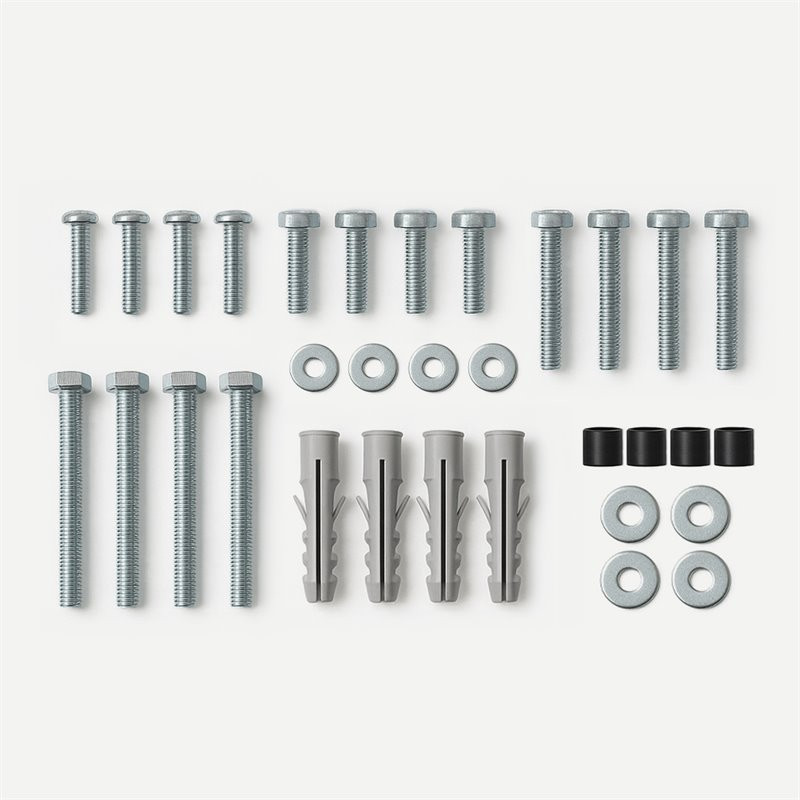 Dołączone akcesoria instrukcja montażu; komplet śrub i kołków montażowych; mała poziomica ułatwiająca poprawny montaż;