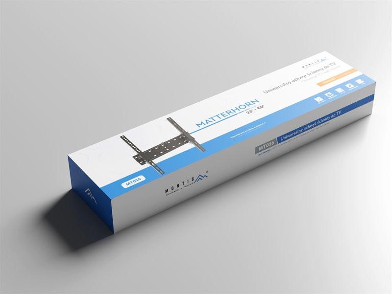 Jeden z najpopularniejszych, uniwersalnych uchwytów ściennych marki Montis MT016 „MATTERHORN”, dedykowany jest do telewizorów o przekątnej od 23 do 60 cali oraz wadze nie przekraczającej 40 kg.