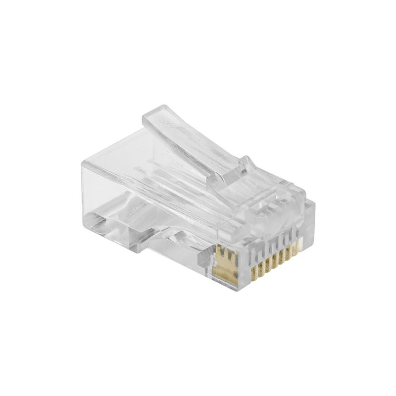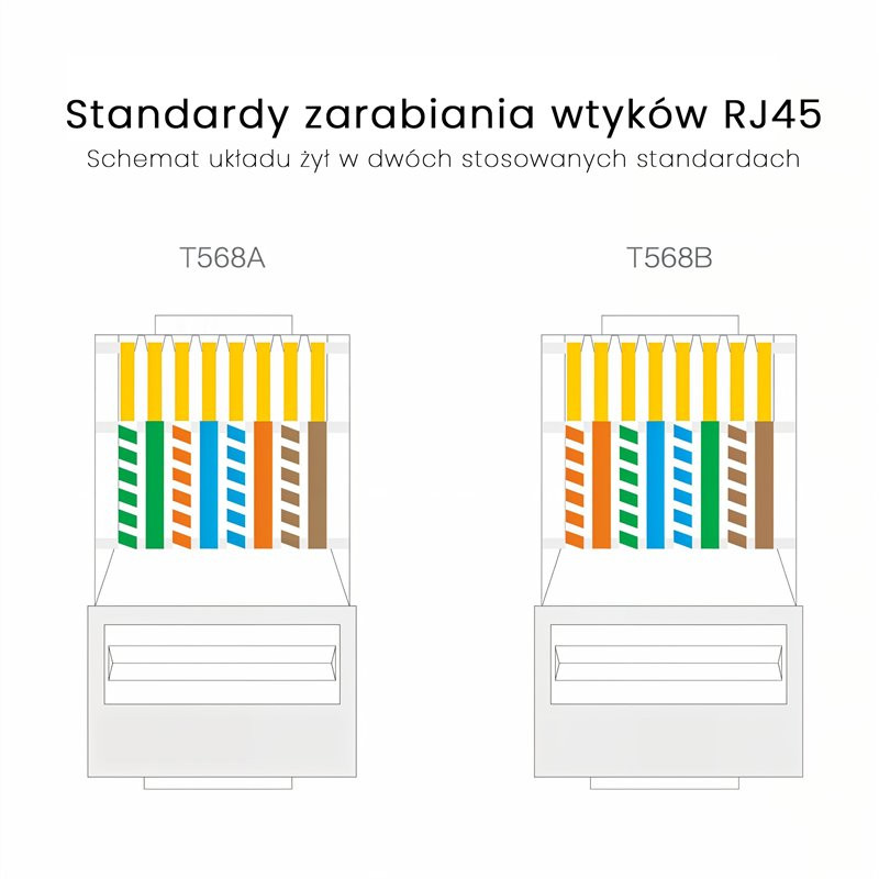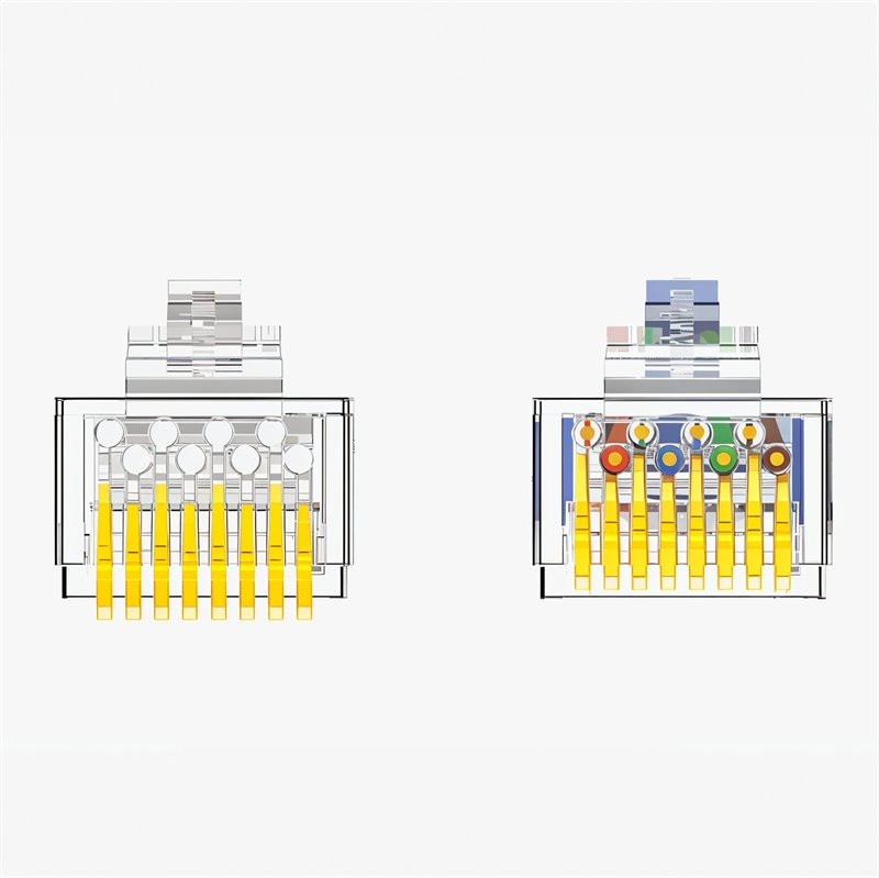 Wtyk RJ45 UTP CAT6 to element, który został opracowany z myślą o budowie przewodów sieciowych gwarantujących szybki i stabilny przesył danych w standardzie 1000 Base-T. Konstrukcja oparta na wysokiej jakości materiałach sprawia, że połączenia wykonane przy jego użyciu charakteryzują się dużą odpornością na uszkodzenia mechaniczne oraz niezawodnością w codziennym użytkowaniu. Styk trójzębny o dużej powierzchni kontaktowej skutecznie współpracuje z miedzianymi żyłami przewodnika, co zapewnia stabilne i pewne mocowanie. Dzięki złoconej powierzchni styków możliwa jest także lepsza ochrona przed utlenianiem, co znacząco wydłuża żywotność całej instalacji. Obudowa z poliwęglanu dodatkowo chroni wtyk przed pęknięciami i zapewnia wysoką trwałość, nawet w intensywnie użytkowanych instalacjach.