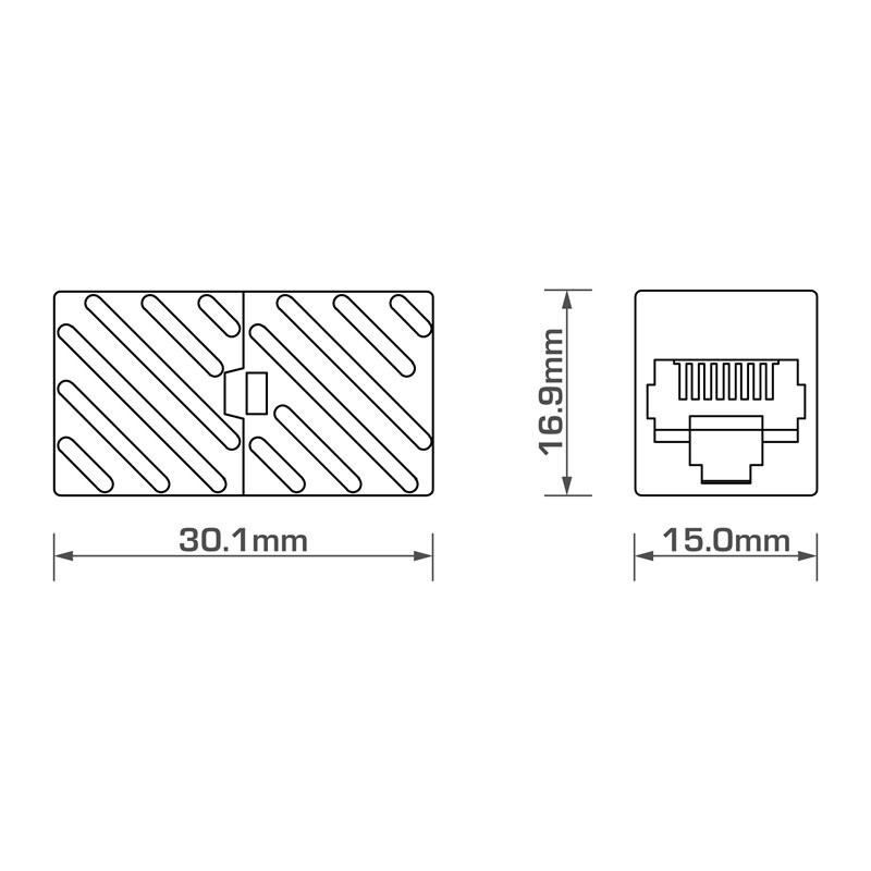 Łącznik RJ45 UTP CAT5E to praktyczne rozwiązanie przeznaczone do stabilnego łączenia przewodów ethernetowych bez konieczności używania dodatkowych narzędzi czy skomplikowanych adapterów. Dzięki konstrukcji opartej na dwóch gniazdach RJ45 8P8C umożliwia szybkie przedłużenie istniejącego przewodu lub stworzenie połączenia pomiędzy odcinkami kabli o łącznej długości do 100 metrów (zalecane do 95 m). Wysokiej jakości styki z brązu fosforowego o grubości 0.3 mm zapewniają odpowiednią przewodność, minimalizując ryzyko utraty sygnału. Urządzenie zostało zaprojektowane w kategorii CAT5E i obsługuje prędkości transmisji do 1 Gb/s, co pozwala na sprawną komunikację w domowych i biurowych sieciach komputerowych. Dzięki solidnej konstrukcji i żywotności szacowanej na minimum 750 cykli, złącze sprawdzi się zarówno w przypadku częstego użytkowania, jak i w instalacjach stałych.