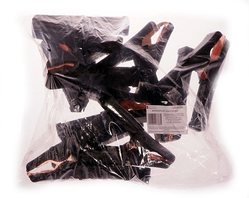 Duży krokodyl koloru czerwonego w pełnej gumowej osłonie ramion i szczęk, idealnie sprawdzi się do przyłączenia przewodów do akumulatora dla przewodzenia dużych prądów.